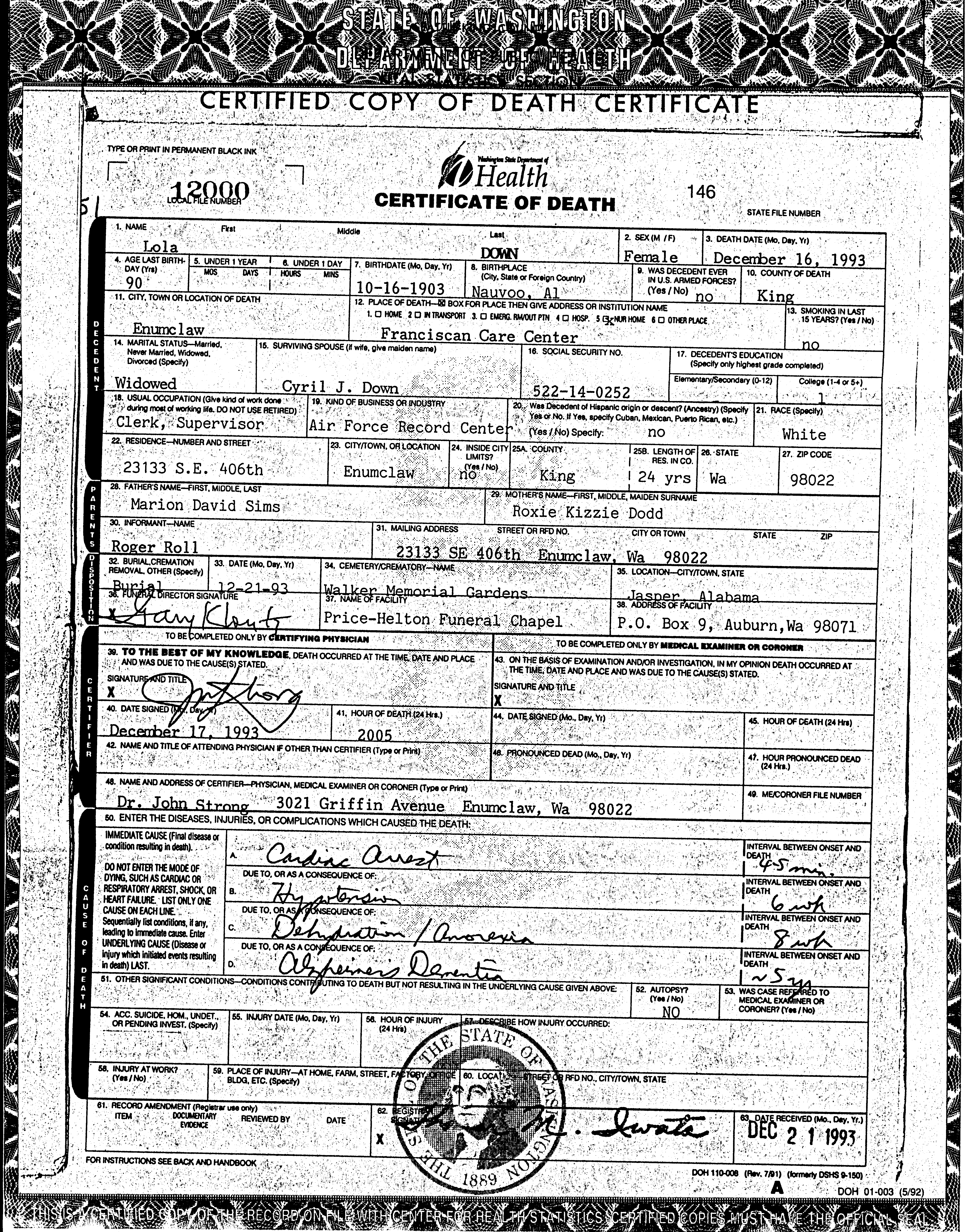 Lola Colantha Down nee Knox nee Burton nee Simms? |